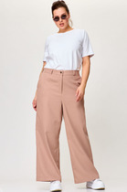 Брюки – из полотна с набивным рисунком в полоску, слегка зауженные книзу, с эластичной тесьмой по талии и притачными манжетами по низу. В центре переда по верхнему срезу прикреплен небольшой декоративный бантик из узкой атласной ленты.