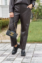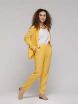 Стоит учитывать слабую растяжимость ткани и зауженность модели в бедрах.