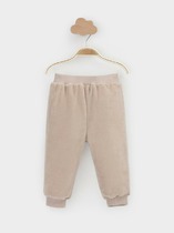 Брюки для девочки из трикотажного полотна "футер-двунитка", на притачном поясе с эластичной тесьмой внутри, с карманами в боковых швах и отделочными деталями фигурной формы на передних половинах. Нижние срезы брюк обработаны с эластичной тесьмой. По швам притачивания отделочных деталей, декоративных вставок и карманам настрочены отделочные строчки. На правой передней половине брюк ниже уровня колена настрочен декоративный элемент прямоугольной формы. Через две петли в центре пояса продет шнурок, позволяющий регулировать степень прилегания изделия по талии.