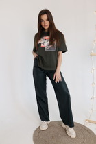 Брюки свободного силуэта из текстильной ткани с карманами, средней посадки на поясе- обтачке со шлевками, застежка молния спереди.