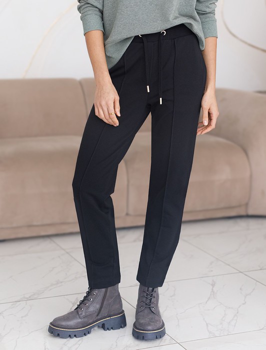 Состав: 75%Хлопок 20%ПЭ 5%ПУ Плотность: 240 Г/м2Брюки выполнены из эластичного футера-двухнитки. Модель дополнена застроченными стрелками, что визуально вытягивает силуэт. Эластичный пояс на резинке с хлопковым шнурком и металлической фурнитурой. Брюки сочетаются в костюме с футболкой D49.031 и бомбером D49.038