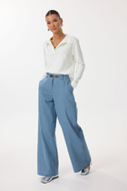 Брюки женские.Спереди застёжка на молнию и пуговицу.Сзади вытачки. В боковых швах карманы с отрезным бочком.Пояс по спинке на резинке , дополнен шлёвками.По низу брюк вытачки, создающие зауженный эффект.