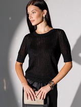 Vilatte Джемпер с коротким рукавом тонкой вязки из вискозы с люрексом D39.332 че