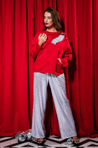 Брюки: Высота посадки - 30см, Длина брюк без пояса - 106см, Длина по внутреннему шву - 84,5см, Ширина брючин сверху - 66см, Обхват брюк по низу - 47см, Ширина по бедрам - 52,5см, Ширина по талии - 39,5см