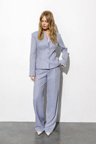 Детали: брюки с притачным поясом со шлевками, складки у пояса, застежка на молнию и пуговицу, боковые карманы, заутюженные стрелки. Задние части брюк с вытачками и имитацией карманов.