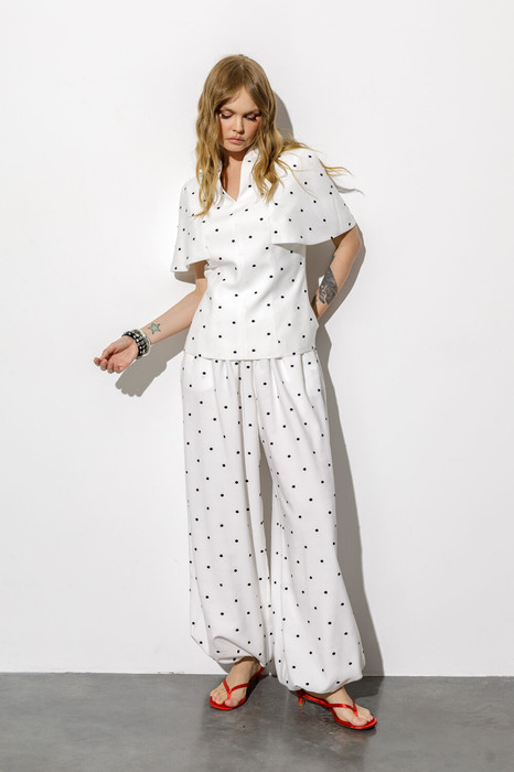 Широкие свободные брюки-алладины из вискозы в горохи (приобрести блузу с фото можно по арт. 6775).
