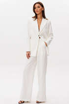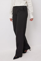 Брюки - молодежные из трикотажного полотна «кулирка» с набивным рисунком «полоска», длинные, свободные, на притачном поясе с эластичной тесьмой внутри, выполненным из двух видов ткани: с набивным рисунком и гладкокрашеной. В пояс вставлен декоративный шнурок, продетый через две обметанные петли в центре пояса.