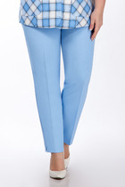 Брюки женские из хлопкового джинса со стрейчем. Брюки с высокой посадкой. Карманы сзади и спереди. Пояс притачной. По спинке расположена резинка.