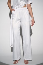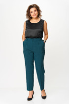 Средняя посадка, пояс притачной, застежка спереди на молнию и пуговицу. По переду боковые карманы.