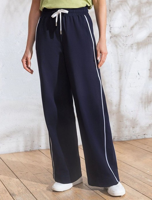 Прямые брюки темно-синего цвета выполнены из премиального футера двухнитки с эластаном плотностью 240 Г/м2. Повседневные брюки сочетают в себе комфорт и оригинальность. Брюки выполны из натурального хлопка, который обеспечивает мягкость и дышащие свойства ткани. Нежный материал дарит ощущение уюта в любое время года, а премиальное качество изготовления гарантирует долговечность и сохранение формы после множества стирок. Лампасы добавляют динамики и вытягивают силуэт. Удобный пояс на резинке регулируется хлопковым шнурком. Юлагодаря свободному прямому крою, брюки подойдут на любую фигуру, а так же большие размеры, включая 56. В этих спортивных брюках вы будете чувствовать себя уверенно, наслаждаясь каждым моментом дня.