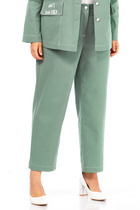 Брюки женские, прямого силуэта идеально сидят на фигуре. Это вещь для тех, кто ценит уютную элегантность и хочет выглядеть продуманно, но непринуждённо. Служат основой для минималистичных ансамблей и для более смелых цветовых сочетаний, универсальны — выглядят органично и летом, и в межсезонье. Брюки прямого силуэта, немного заужаются к низу, застежкой на тесьму молнию в гульфике и пуговицу в поясе. В поясе брюк вставка эластичной тесьмы резинки резинки «в бочках», а так же декоративные рельефы по переду. По переду брюк наклонные карманы. В задних половинках брюк вставка декоративной кокетки и накладные карманы. Длина брюк 97 см.