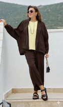 21.04 Vilatte Свободные брюки палаццо на эластичном поясе изо льна с вискозой D2