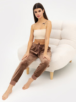 Брюки женские прямого силуэта из трикотажного полотна интерлок. Пояс цельнокроенный на жаккардовой эластичной тесьме.