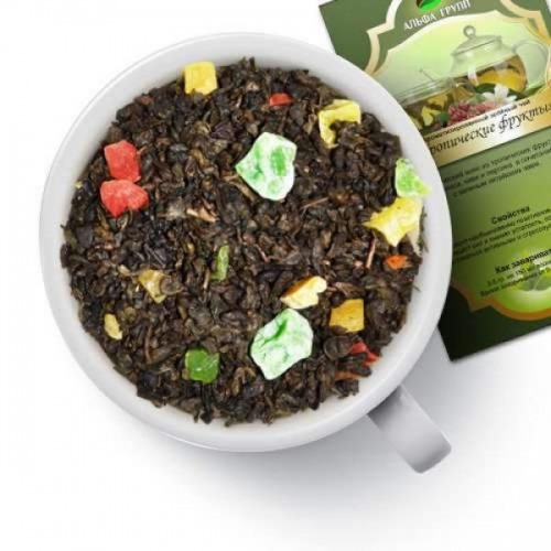 Экзотический микс из тропических фруктов - манго, ананаса, папайи, киви и персика в сочетании с зеленым китайским чаем наполняет его незабываемым ароматом и вкусом с пронзительной сладостью, мягкой и всепроникающей. Чай дарит необыкновенно позитивное настроение, придаст сил и снимет усталость, поможет вам оставаться активными и стрессоустойчивыми.
