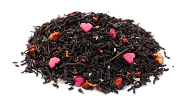Черный крупнолистовой чай с ягодами клубники, малины, кокосовой стружкой и кокосовым ароматом.