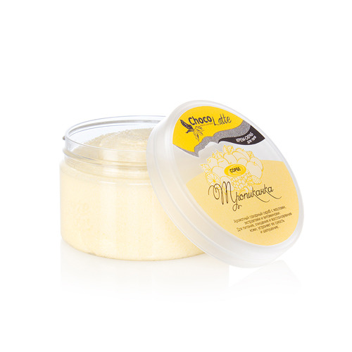 Состав: сахар, масла (ши, какао, оливы, льна, миндальной косточки, авокадо, облепихи), порошок соков ананаса и манго, парфюмерная композиция, СО2 экстракты (алоэ вера, яблока, косточки винограда, эхинацеи, корня лопуха), витамины А, E, F.