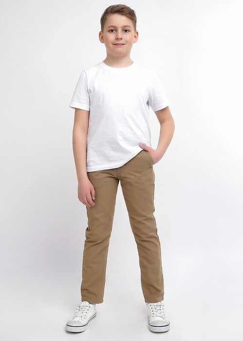 Брюки Чиносы прямого кроя из натурального хлопчатобумажного полотна. Для удобства в модели предусмотрены карманы. Можно сочетать с любыми классическими и повседневными вещами. Комфортные и практичные брюки для детей всех возрастов.