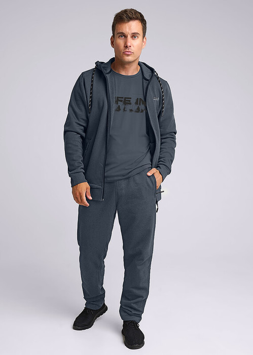 Брюки мужские прямые из плотного футера с начёсом, пояс на резинке с регулируемым шнуром. Функциональности модели придают боковые карманы на молнии. Брюки очень эргономичные и удобные, прекрасно подойдут для повседневной носки.