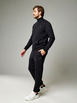 Мужские спортивные брюки из трикотажного полотна на манжете с удобными молниями на карманах. Дополнены шнурком для регулировки посадки , фирменной фурнитурой и авторским принтом. Обеспечивают свободу движений и комфорт.