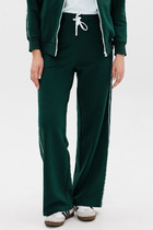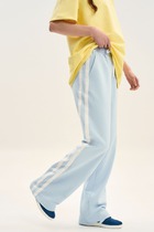 Брюки для дома и отдыха свободные, прямые из хлопкового трикотажного полотна интерлок. Пояс и низ брюк на внутренней резинке, по талии со шнуром. Спереди рельефный шов. Боковые карманы с отрезным бочком.