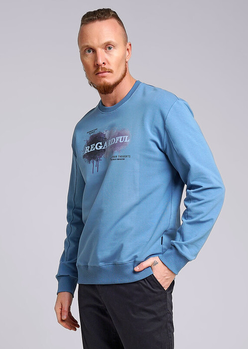 Стильный мужской джемпер из трикотажного полотна футера. Изделие с круглым вырезом горловины и длинным двухшовным рукавом на манжете, в дополнении дизайнерский принт. Отличный вариант на каждый день.