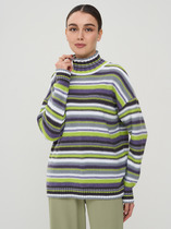 Джемпер объёмный из поливискозного трикотажного полотна джерси. Спущенный длинный рукав. По горловине стойка с молнией по спинке. По переду и спинке средний шов. По низу изделия потайной стежок. Спереди нашивка металл.