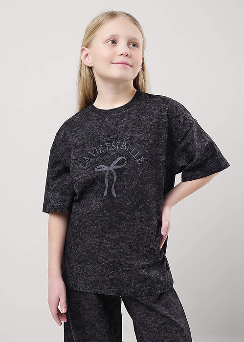 Clever Футболка детская для девочки CLE 856797/12кдн_п чёрный/т.серый