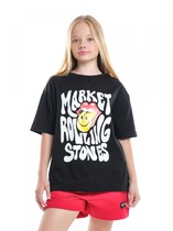 Базовая футболка из 100% хлопка-незаменимая вещь в гардеробе. Горловина оформлена эластичным кашкорсе, яркий принт по переду разбавит скучные луки.