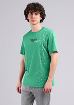 Футболка из дышащего хлопкового полотна с округлой горловиной. Модель с абстрактно-шрифтовым дизайнерским принтом. Отличный вариант для образа в спортивном стиле.