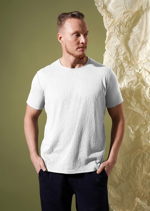 Молодежная футболка из легкого фактурного полотна. Особенностью модели являются необработанные края горловины и рукавов, дополнена имиджевой фурнитурой. Можно сочетать с шортами, подойдет для встреч с друзьями и прогулок.