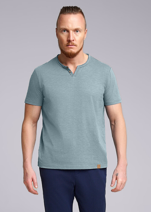 Футболка мужская с округлой горловиной и планкой, коротким втачным рукавом. Данная модель прекрасно комбинируется с джинсами или шортами. Отличное решение на лето, для прогулок с друзьями или поездки на отдых.