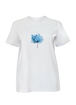 Футболка классического кроя из плотного хлопкового трикотажного полотна. Короткий втачной рукав. Округлая горловина с обтачкой из рибаны. По переду принт с фольгой