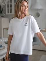 Футболка из трикотажного полотна с добавлением модала. Округлая горловина с окантовкой. Короткий втачной рукав. Спереди кокетка, нижняя часть переда двойная.