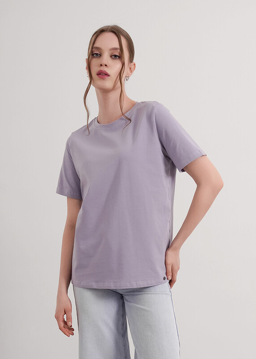 Футболка женская из эластичного хлопкового полотна. Классический крой. Круглый вырез горловины. Короткий рукав. На левом рукаве фирменная силиконовая нашивка.