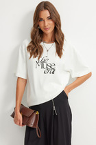 Джемпер прямого силуэта из хлопкового трикотажного полотна. Слегка спущенный короткий рукав. Округлая горловина с обтачкой.