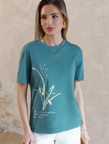 Футболка женская из эластичного полотна с хлопком и модалом в составе. Короткий рукав. Круглый вырез горловины. Фирменный жаккардовый логотип.
