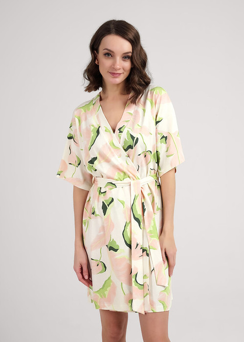 — Clever Халат женский CLE LX25-1111 персиковый/св.зелёный