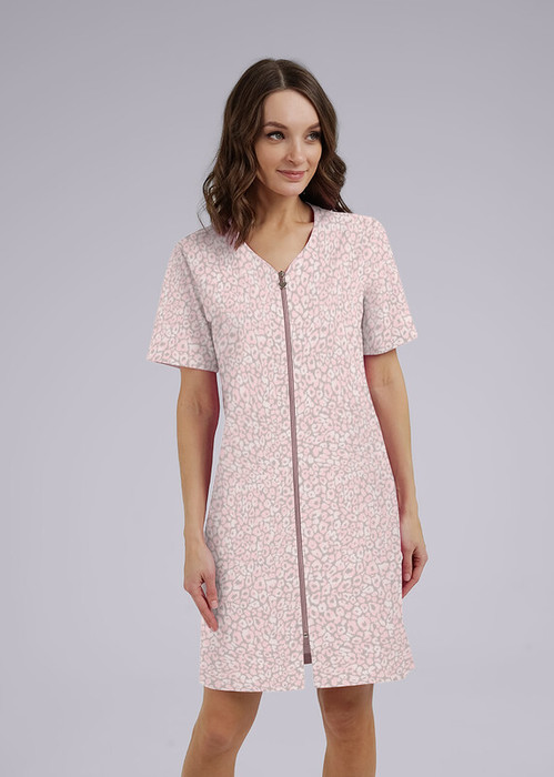 Халат на молнии для дома из 100% хлопка. Короткий рукав. Круглая горловина. Карманы в швах. Производство Узбекистан.