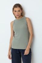 Майка прилегающего силуэта, из эластичного хлопкового полотна. Узкая бретель.