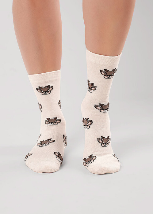 новогодние женские носки с рисунками мордочка оленёнка