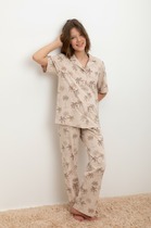 Новогодняя хлопковая пижама из джемпера и брюк. Горловина , манжеты по низу рукава и брюк из эластичного полотна. Лонгслив свободного кроя со спущенным плечом и крутым принтом.Брюки среднего объема, эластичный пояс обеспечит комфорт и идеальную посадку.