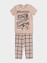 Комплект хлопковой пижамы из футболки и шорт. Футболка свободного кроя дополнена эластичной горловиной и стильным принтом. Шорты среднего объема, эластичный пояс обеспечит комфорт и идеальную посадку.