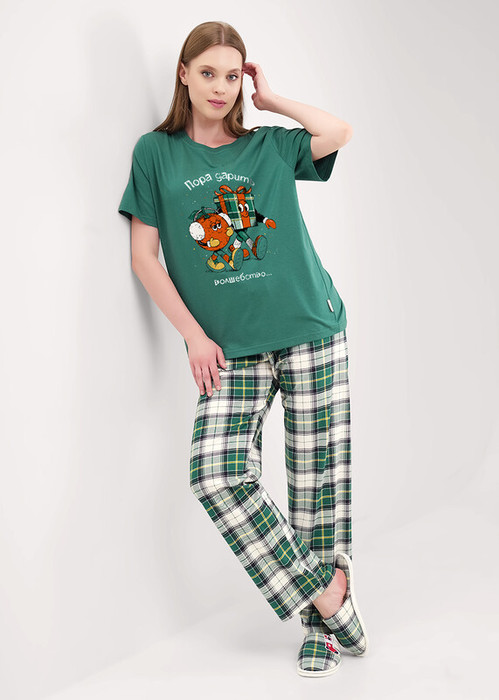 Совместные покупки Сургут Женская одежда Пижамы, халаты — Clever Пижама женская CLE LP15-1199/3 т.зелёный/молочный