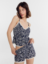 Набор одежды из трикотажного полотна.Футболка прямого кроя,по горловине обтачка с контрастным цепным стежком.Короткий втачной рукав,внизу вышивка.Спереди принт со вспенкой. По бокам разрезы. Бриджы на резинке с киперной лентой. Карманы с отрезным бочком.