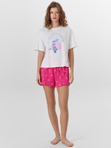 Пижама для дома из хлопкового трикотажного полотна с эластаном.Майка прямого силуэта, среднее плечо.По горловине и пройме окантовка с застилом, внизу нашивка.Короткие шорты с притачным поясом на внутренней резинке,спереди имитация гульфика с пуговицами.