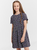Стильное хлопковое платье для маленькой принцессы на каждый день. Короткий рукав, завышенная талия и юбка на сборке. Комфортная посадка подарит свободу в движении и уют, интересные набивки добавят изюминку в твой образ.