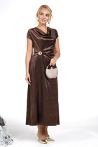 Платье полуприлегающего силуэта из трикотажного полотна с блеском. Округлая горловина. Длинный втачной рукав, по низу рукава разрезы. По переду рельеф со сборкой на резинку и разрезом. По спинке средний шов с застёжкой на молнию.