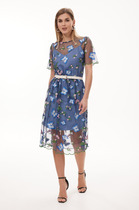 Платье из трикотажного полотна интерлок жаккард, прямого силуэта длиной ниже колена. По горловине стойка, спереди на молниии. Длинный втачной рукав. По спинке средний шов, внизу разрез.