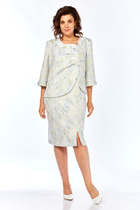 Платье без рукавов из фактурного трикотажного полотна джерси, длиной ниже колена. По горловине и пройме внутренняя окантовка. Отрезное по линии талии, боковые вставки со сборкой. По плечу завязки из окантовки. По спинке средний шов.
