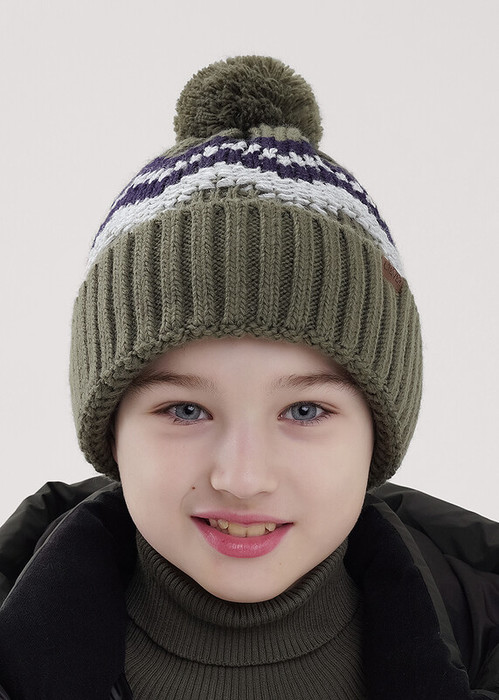 Clever Шапка детская для мальчика CLE 454390ап флис хаки/т.синий